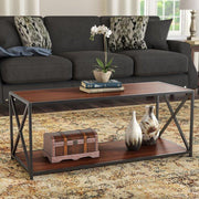 Solid Wooden & Iron Center Coffee Table for Home (Black) - Iron Frame Table