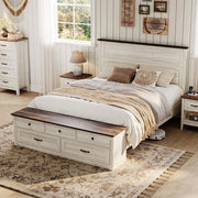 Furnishiaa Farmhouse Solid Sheesham Wood Queen Bed with Tall Headboard & Storage Bench with Drawers - Queen